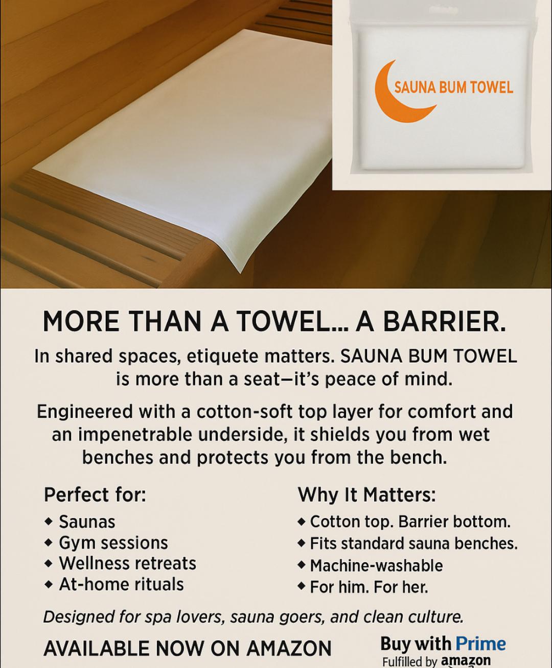 More Than A Towel...A Barrier. Sauna etiquette made simple. Lightweight, durable and easy to carry. Purposefully made without plushness. Designed for everyday use with dependable performance.